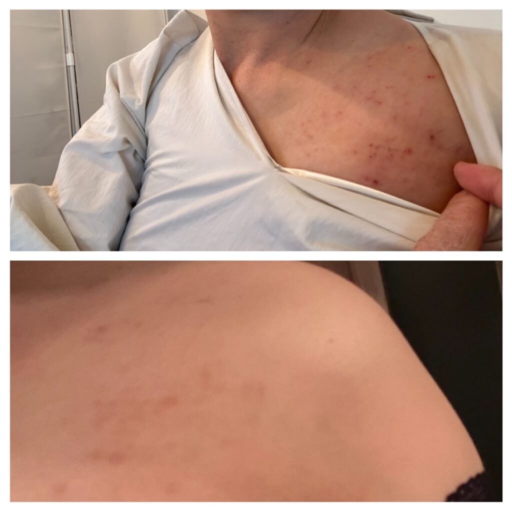 (ナチュラルホルモンケア2週間後肩回りや胸上部の湿疹が消失)